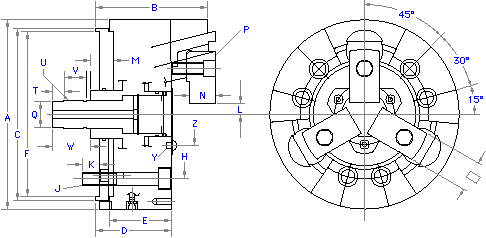 Three-jaw pull lock style power chucks are ideal for finish machining applications. The radial and pull-back features allow high gripping forces, component length control as well as high repeatability of 0.0004". OD and ID grip versions are standard.